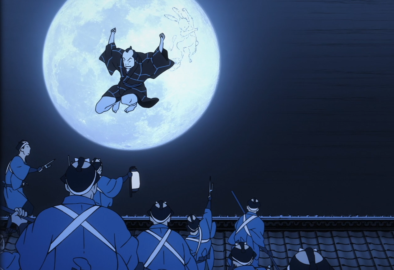 Based on the lost film by legendary 1930s director Sadao Yamanaka, this 23‑minute animated short is an homage to silent-era filmmaking brought to life by renowned anime director, Rintarō (Metropolis 2001). Known for his humanist directorial approach, Yamanaka remains a pivotal figure in Japanese cinema, despite his promising career being tragically cut short, when he died at just 28. This rollicking adaptation is a tribute to his vision, blending traditional storytelling formats like benshi narration and silent film intertitles with noir-style visuals and modern animation. With stirring music by Toshiyuki Honda and exquisite character designs by Katsuhiro Otomo (Akira 1988) and Yoshinori Kanemori (Pluto 2023), the vibrant streets of Edo burst to life in this dynamic France-Japan co-production.