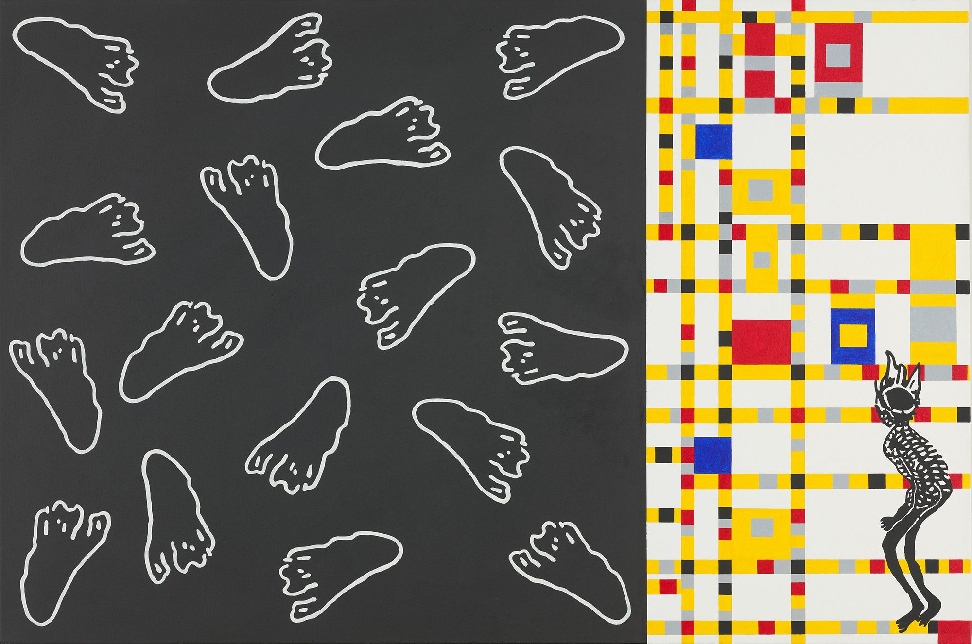 Gordon Bennett, Australia 1955–2014 / Home Décor (De Stijl + Preston) Get Down and Boogie 1996 / Synthetic polymer paint on canvas / 101 x 152cm / Gift of Dr Paul Eliadis AM through the QAGOMA Foundation 2024. Donated through the Australian Government's Cultural Gifts Program / Collection: Queensland Art Gallery | Gallery of Modern Art / © The Estate of Gordon Bennett / View full image