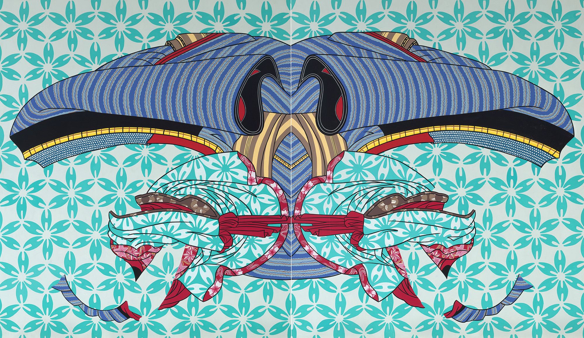 Natalya Hughes, Australia b.1977 / Looking cute 2013 / Synthetic polymer paint on marine ply / Two panels: 140 x 240cm (overall) / The James C. Sourris AM Collection. Gift of James C. Sourris AM through the QAGOMA Foundation 2018. Donated through the Australian Government's Cultural Gifts Program / Collection: Queensland Art Gallery | Gallery of Modern Art / © Natalya Hughes / View full image