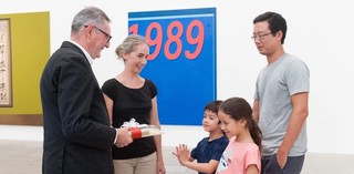 QAGOMA Director Chris Saines, who presented the lucky visitor and her family with a complimentary one-year Gallery membership and copies of exhibition publications, said APT8 would close in only three weeks on 10 April.